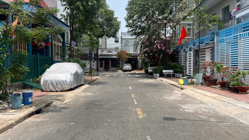 Mặt tiền đường nhựa 6m mỗi bên vĩa hè cây xanh 3m điện nước âm